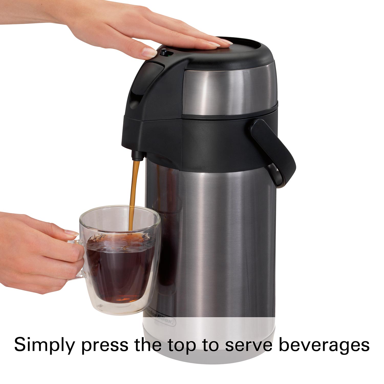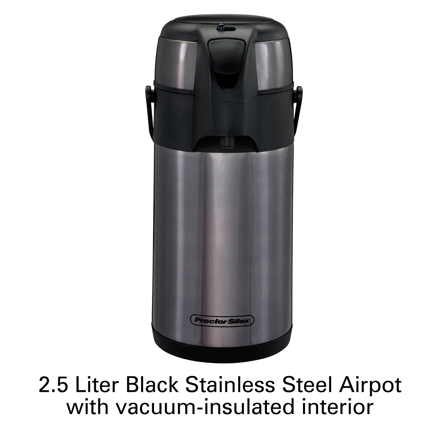 Holds 2.5 liters of hot or cold beverages, equivalent to 16 standard-sized (5 ounce) cups of coffee.